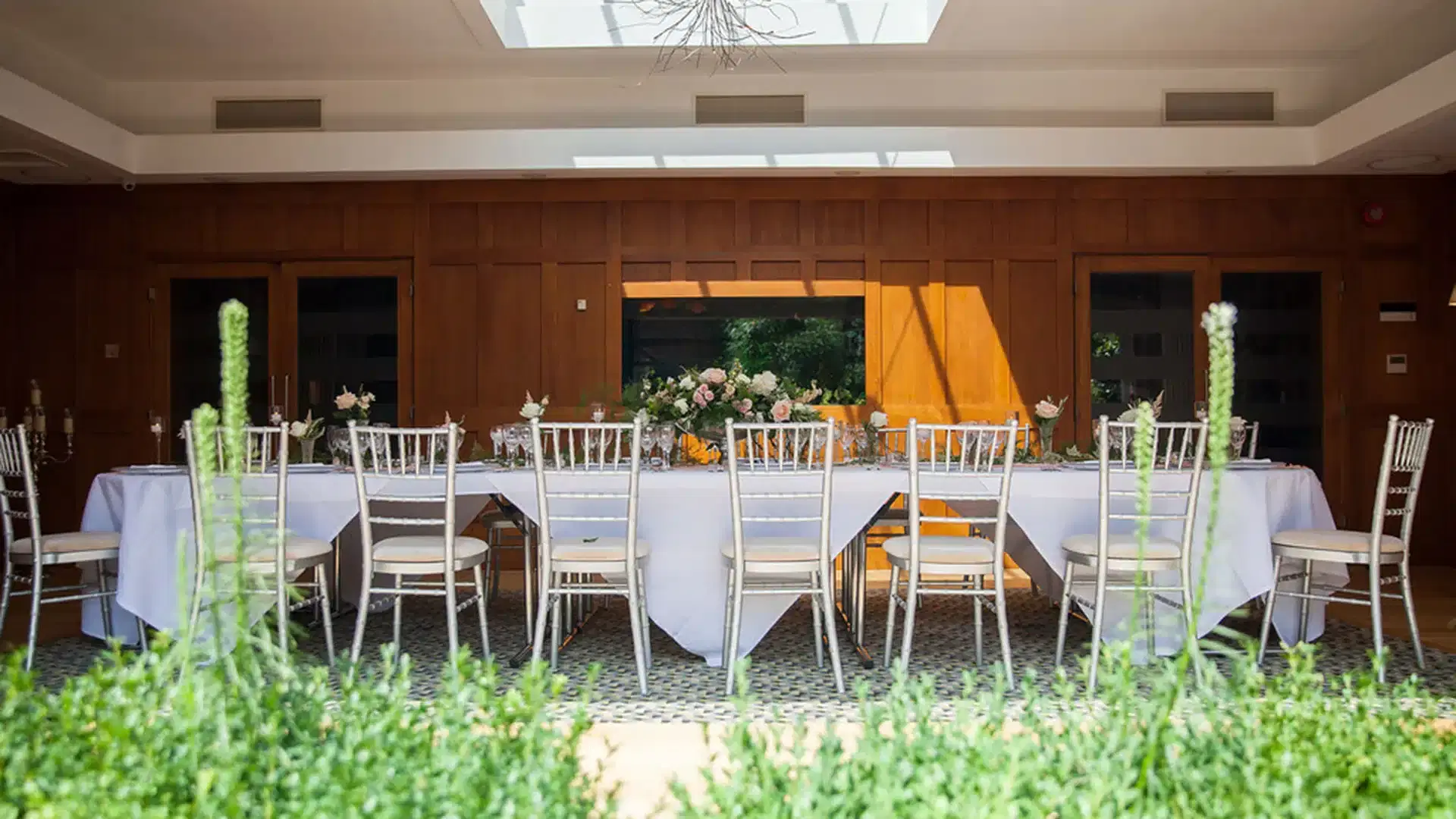 The three rooms together can quickly and easily transform, creating a single span area with its own bar, comfortable seating and exclusive facilities separate from other parts of the hotel. This astonishing flexibility allows your party to grow to up to 120 guests, with access to the private garden, terrace, and Gazebo Lawn via the ground level double-doors.